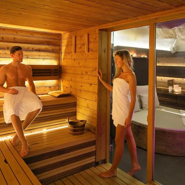 The wellness area features two private saunas, each designed for comfort and privacy. After a good sweat, the cold plunge awaits, ready to refresh and rejuvenate. The relaxation areas are cozy, providing a perfect space to unwind between sauna sessions.