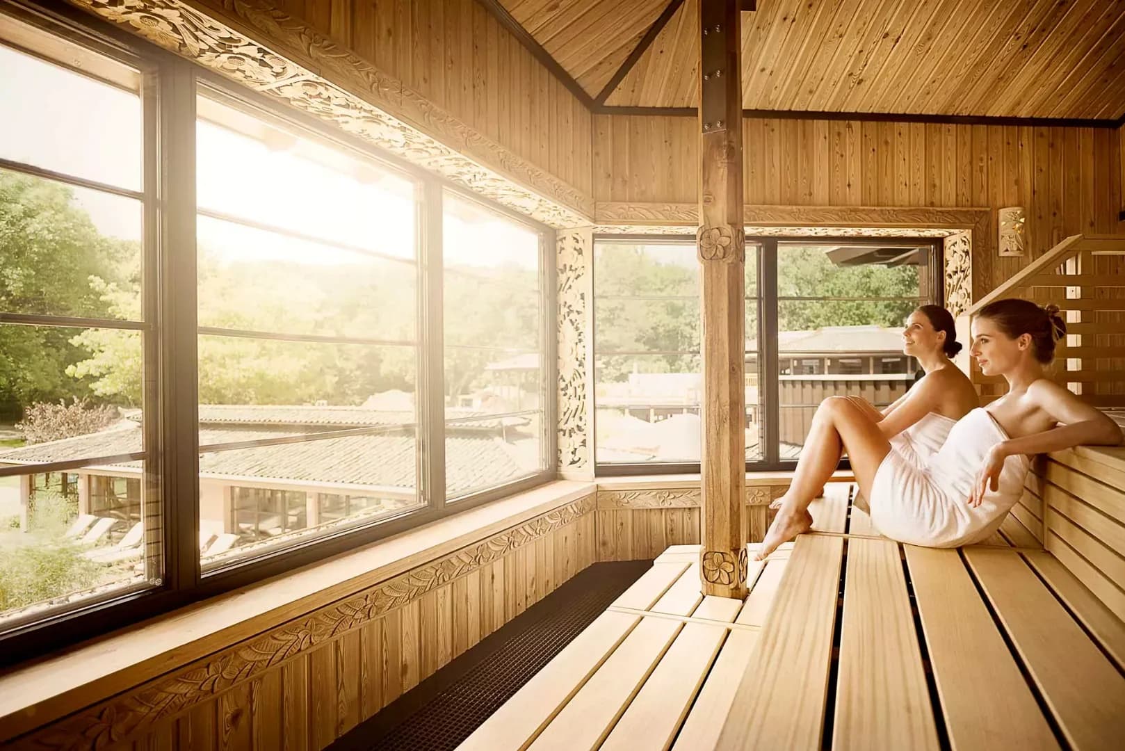 Vabali Spa Berlin features more than ten saunas—including a panoramic sauna, herbal sauna, and meditation sauna—plus steam baths, heated indoor and outdoor pools, and relaxation rooms with waterbeds. Two day-spa suites and nine themed treatment rooms host massages ranging from classic and deep-tissue to Lomi Lomi Nui and Ayurvedic therapies. Wellness rituals such as Balinese body scrubs and aroma ceremonies enhance the experience.